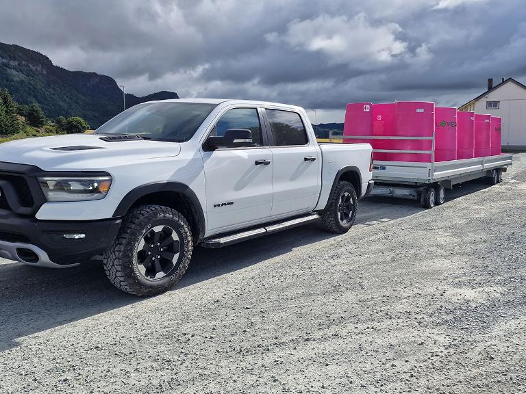 Lapee: B: 211 cm H: 175 cm D: 230 cm Vekt: 240 kg. 1100 liter tank.